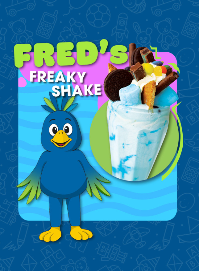 The Freaky Shake is now an exclusive treat for Fred First Kids Club members only! Simply show your blue Fred wristband to order yours and the shake will be added to your bill.